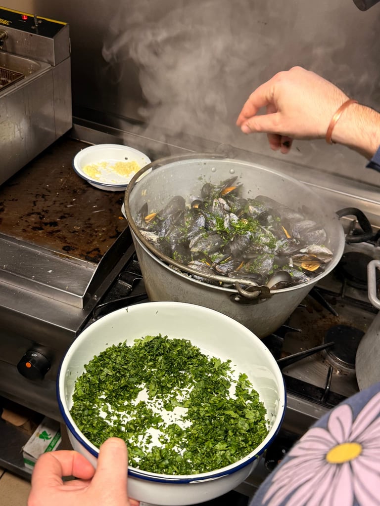 Then in the evening about 20 of us got together in Llangrannog to eat them, classic moules marinière avec frites but it was incredible. They were so tasty, so much bigger than any I’ve ever had at a restaurant. It was a really fun night.
