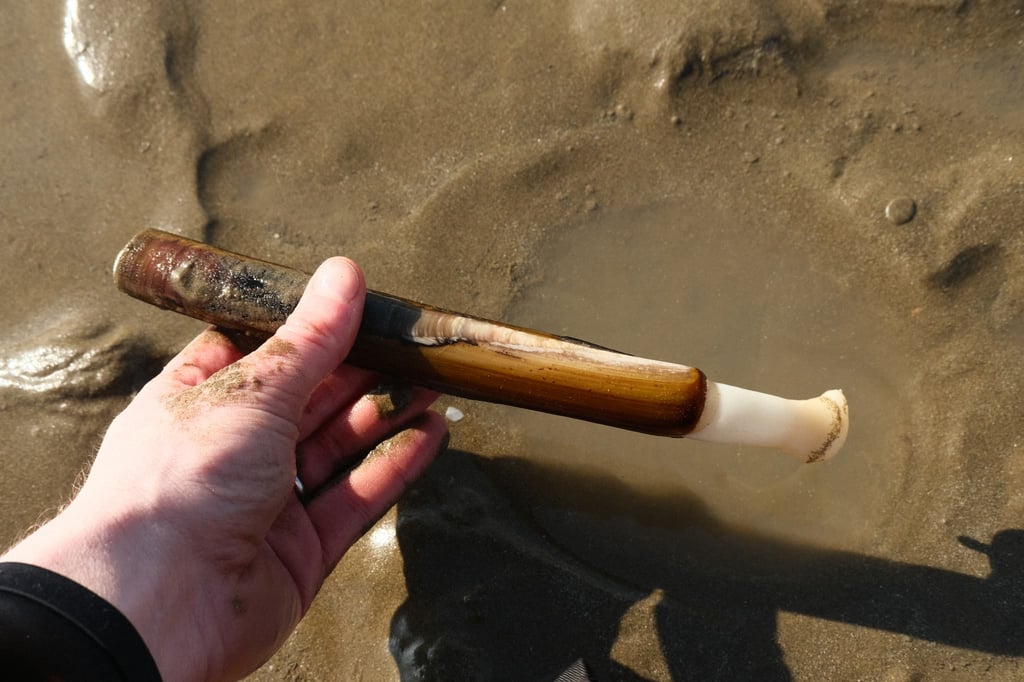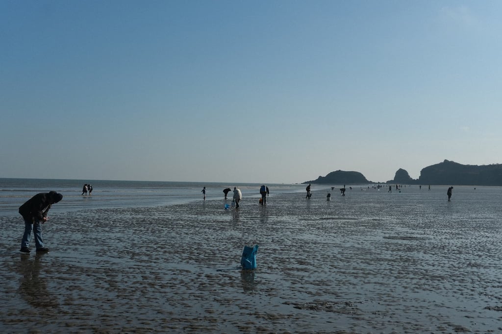 I’ve never done it before but Siân and Bec showed me how, we had plastic bottles with sea water in that we added a load more salt to, then walk backwards taking small tappy steps to disturb the sand. Eventually an “event/distubance” will happen and you you squirt the salty water down the hole, after a while the clam will appear and you grab it by it’s shell, and hold it then pull slowly until you get it out. It’s impressive how strong they are.